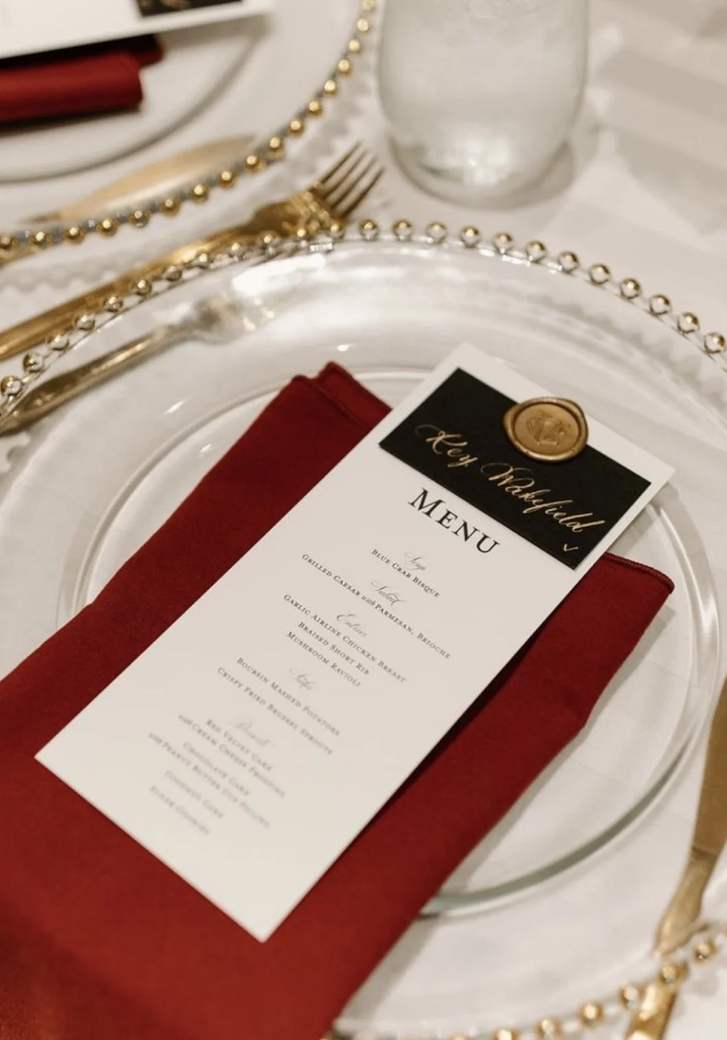 Add a touch of char with our range of custom creations, including personalized menus, place cards, invitations, and more.